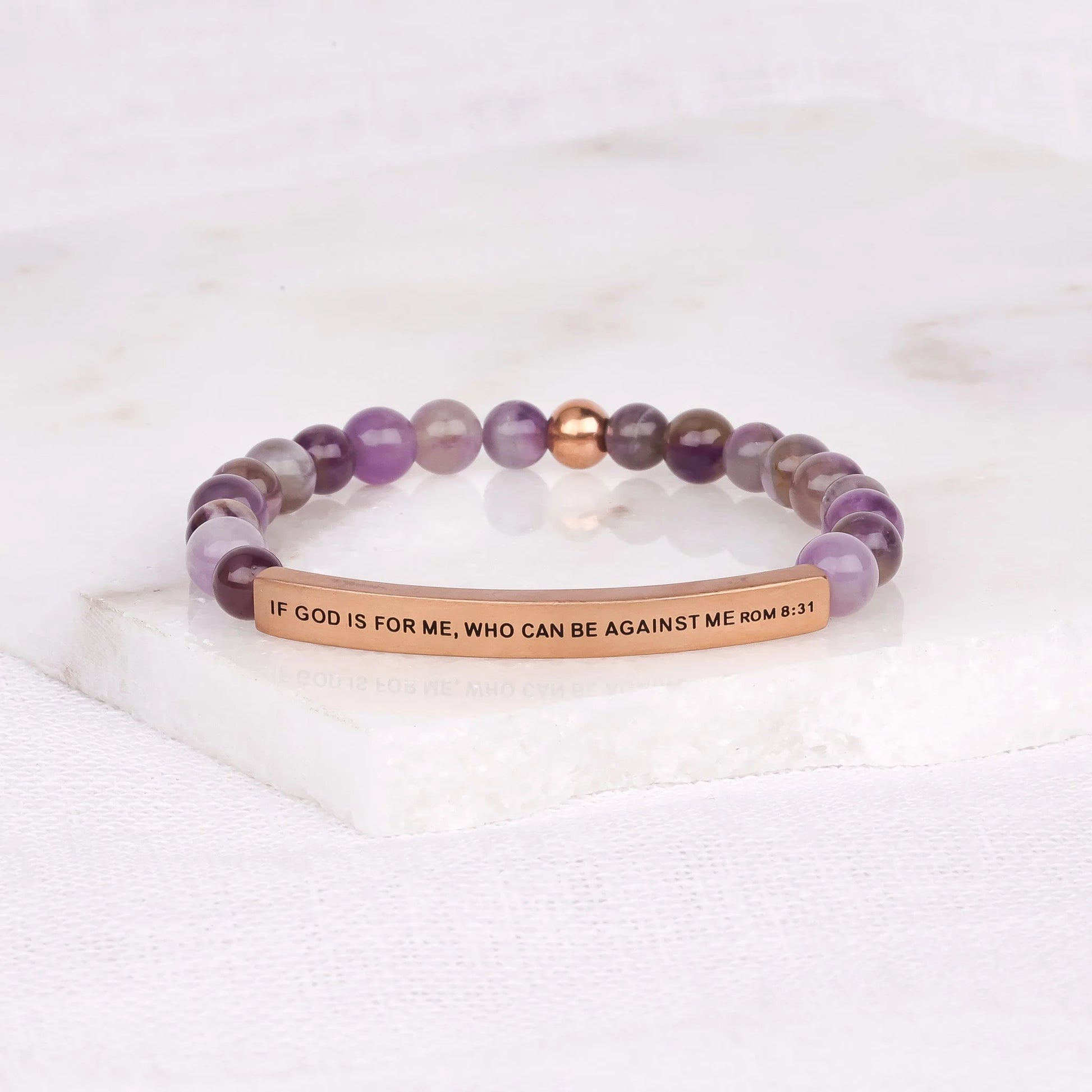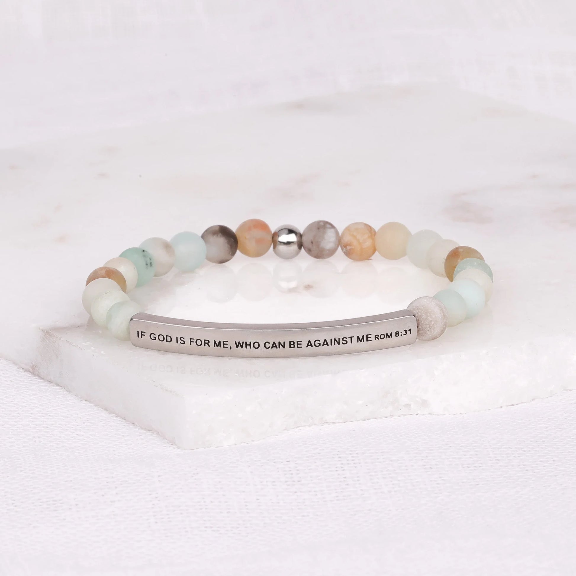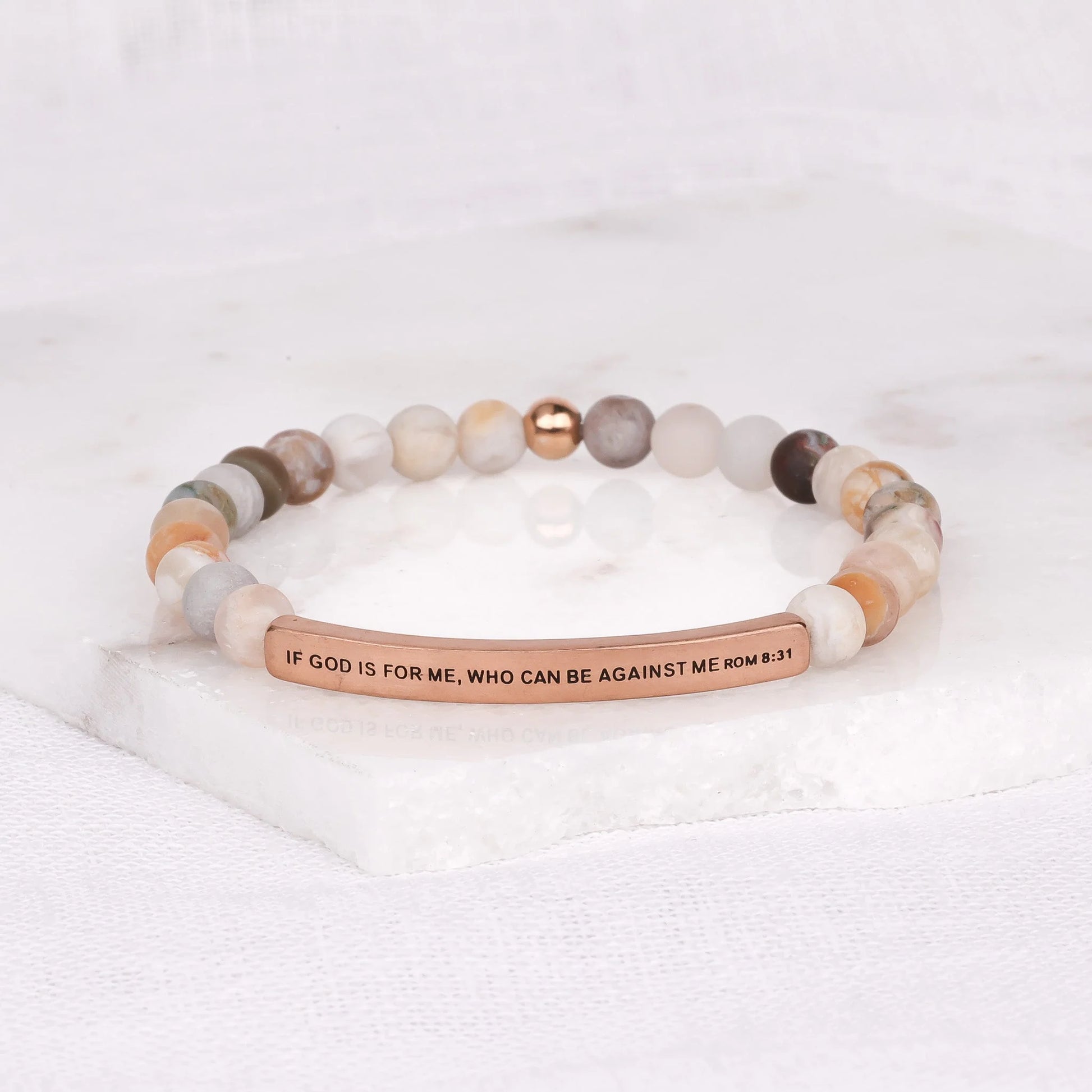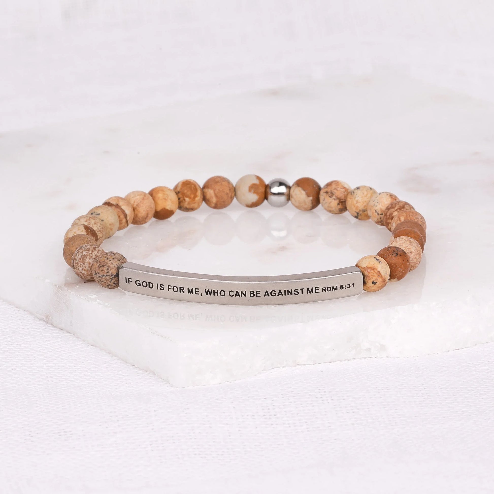 Our inspiration bracelets are beautiful reminders, crafted with 100% all-natural earth stone beads and an engraved stainless steel bar. Wear them throughout the day as a source of inspiration.