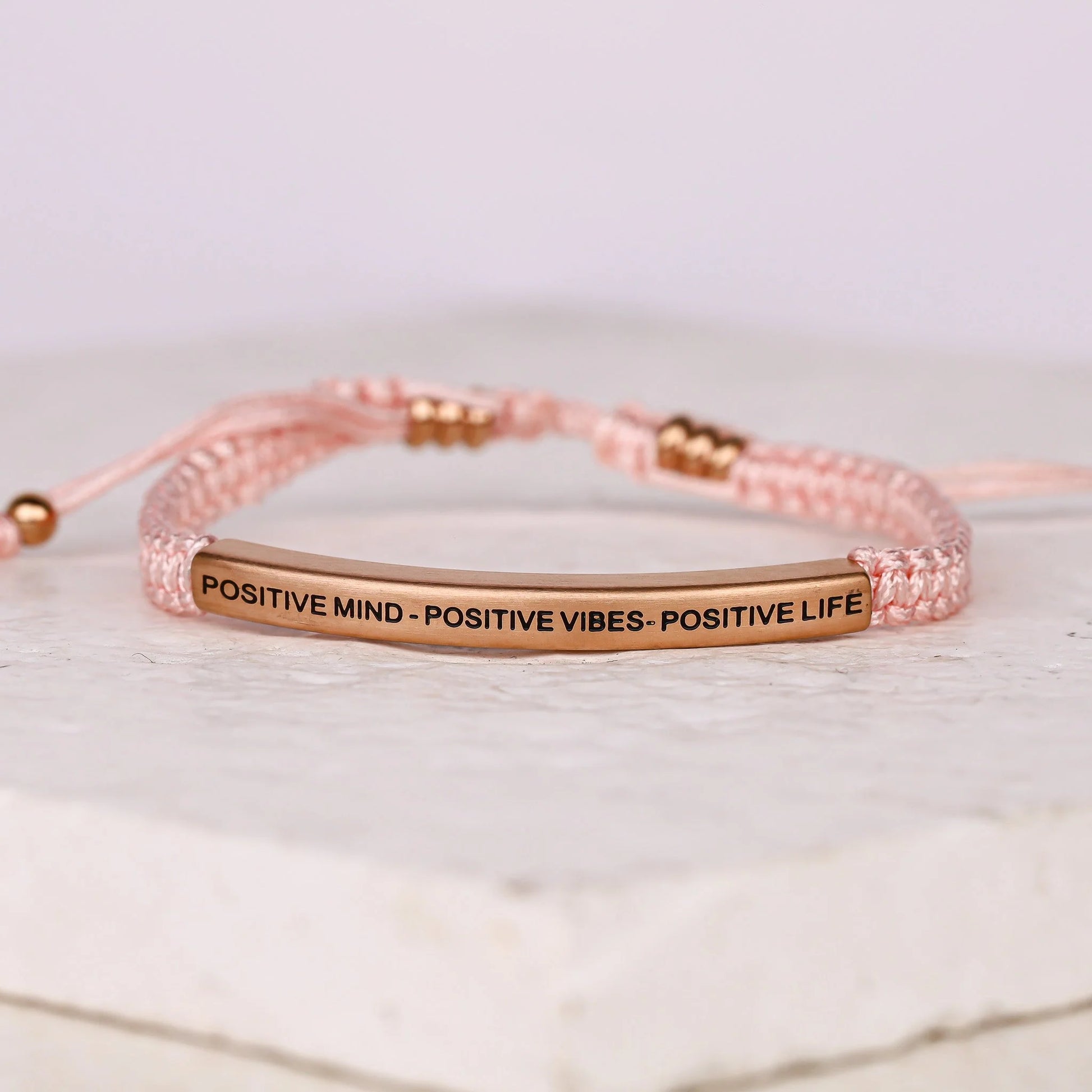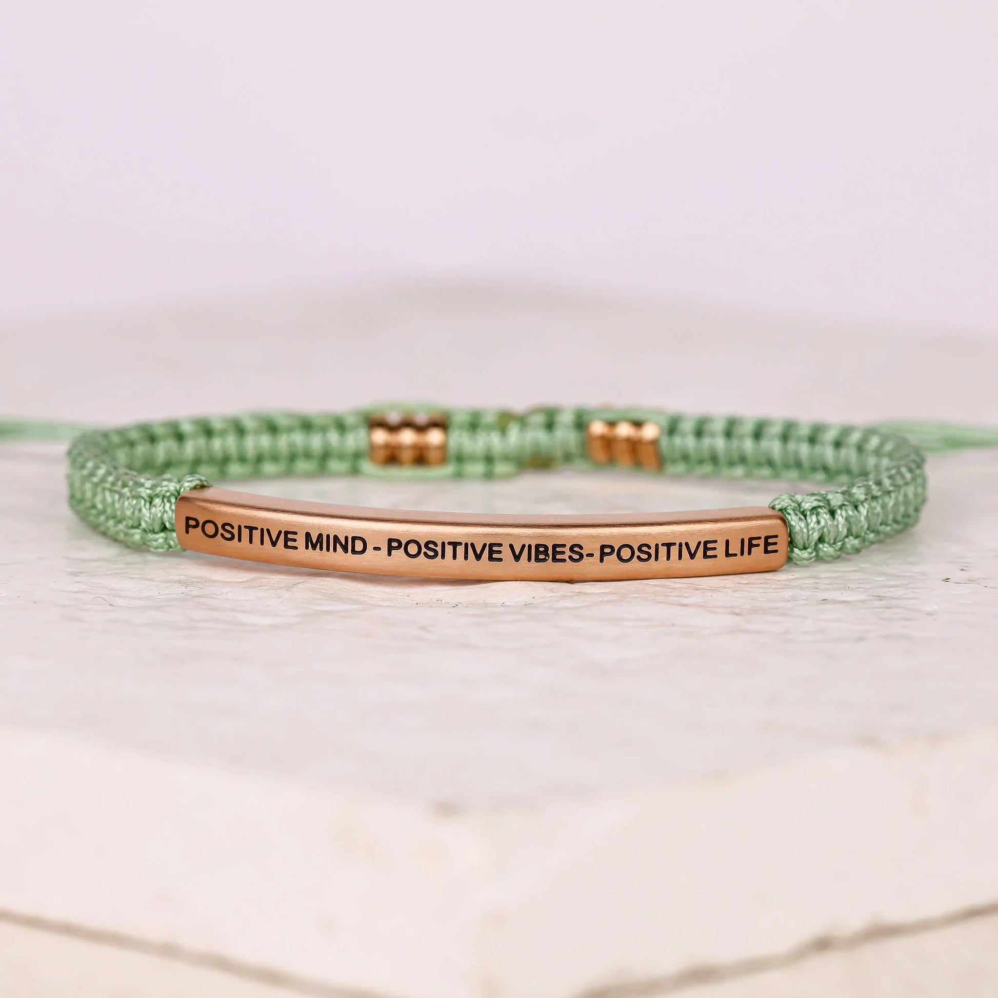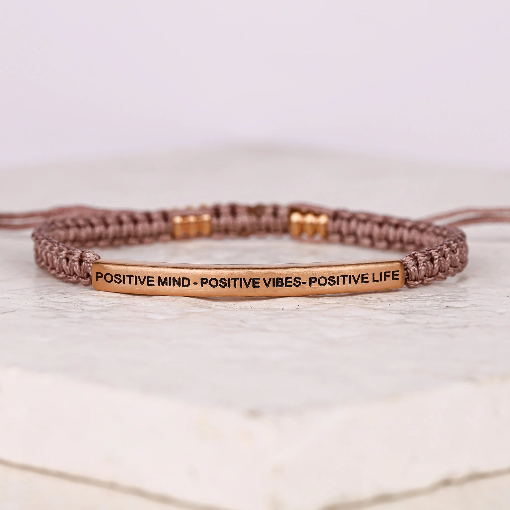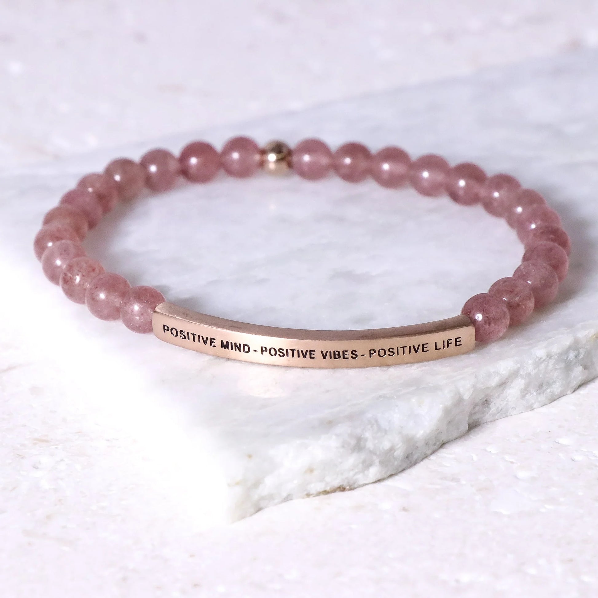 Our inspiration bracelets are beautiful reminders, crafted with 100% all-natural earth stone beads and an engraved stainless steel bar. Wear them throughout the day as a source of inspiration.