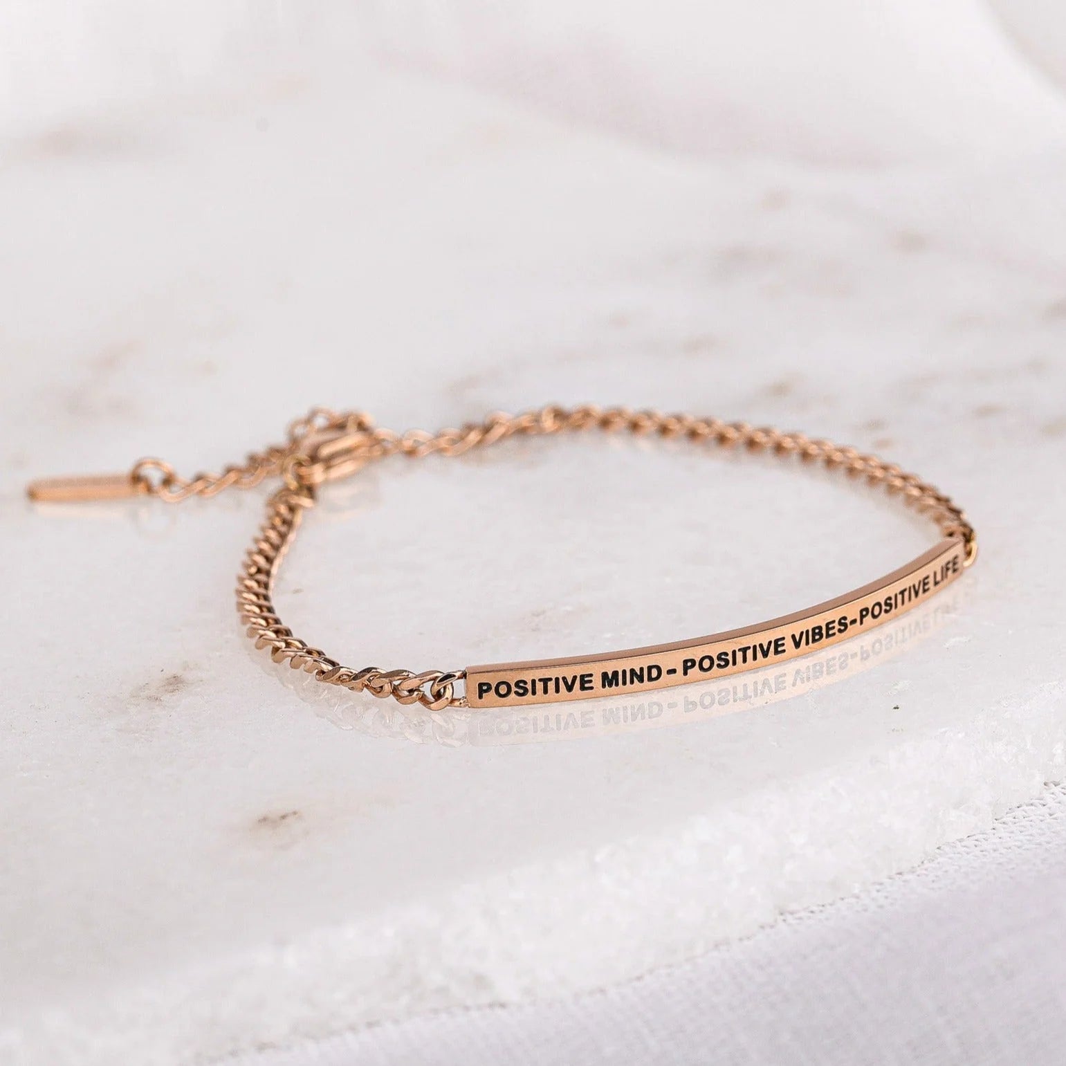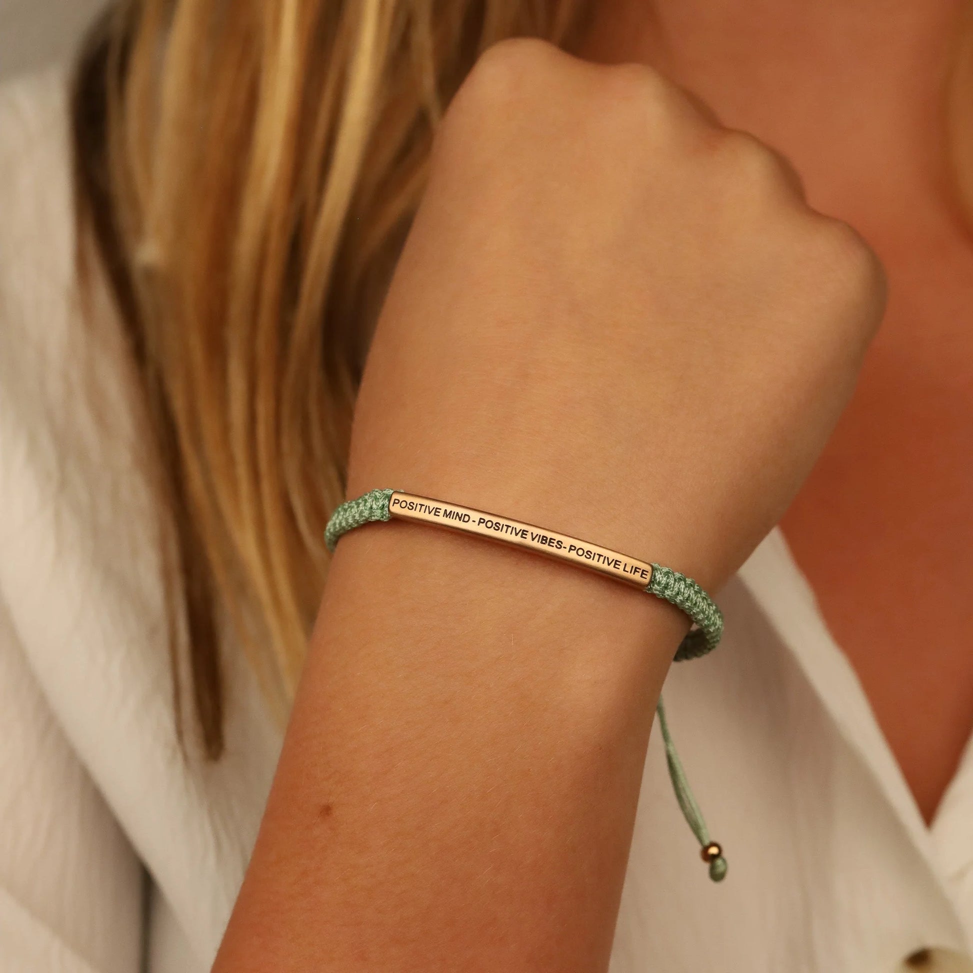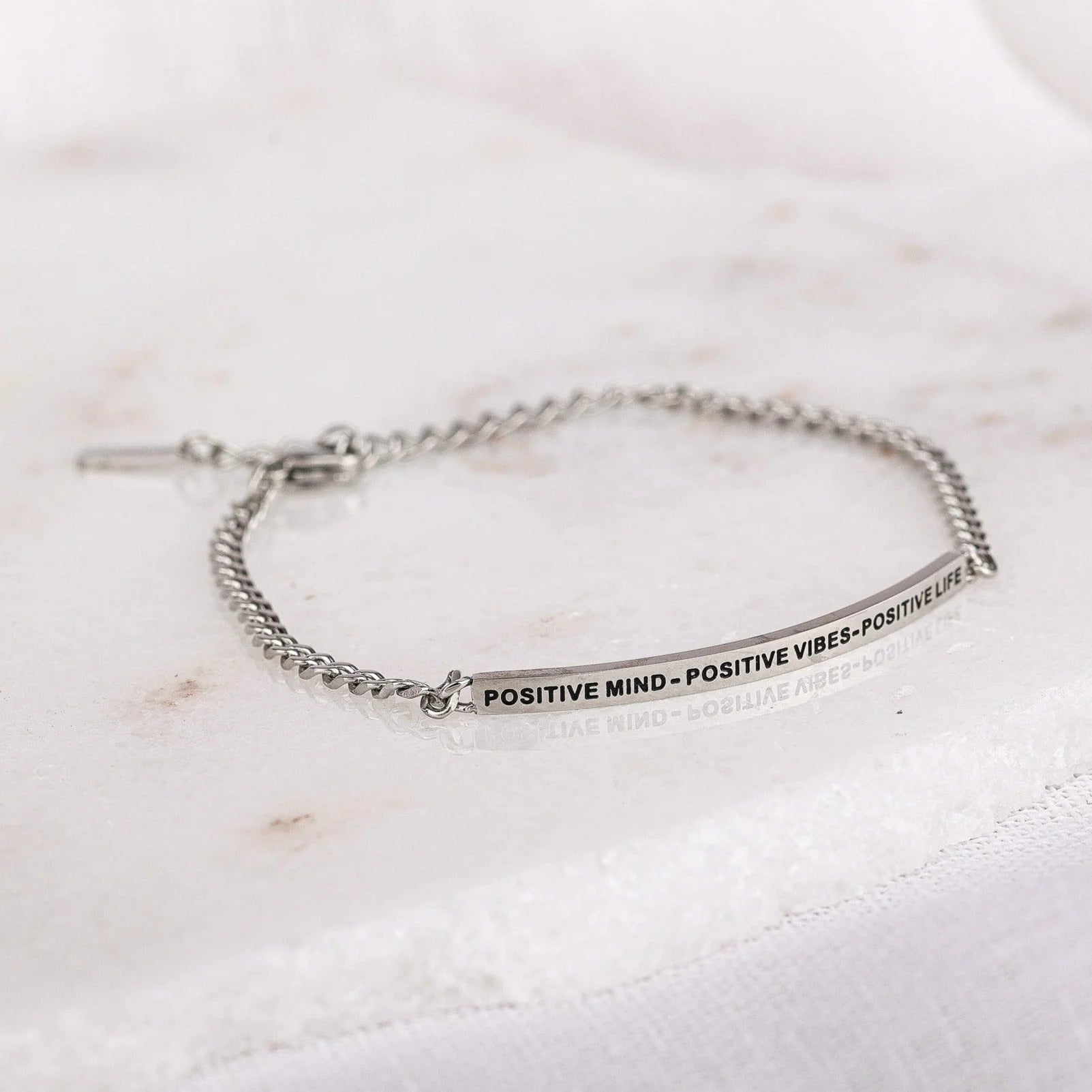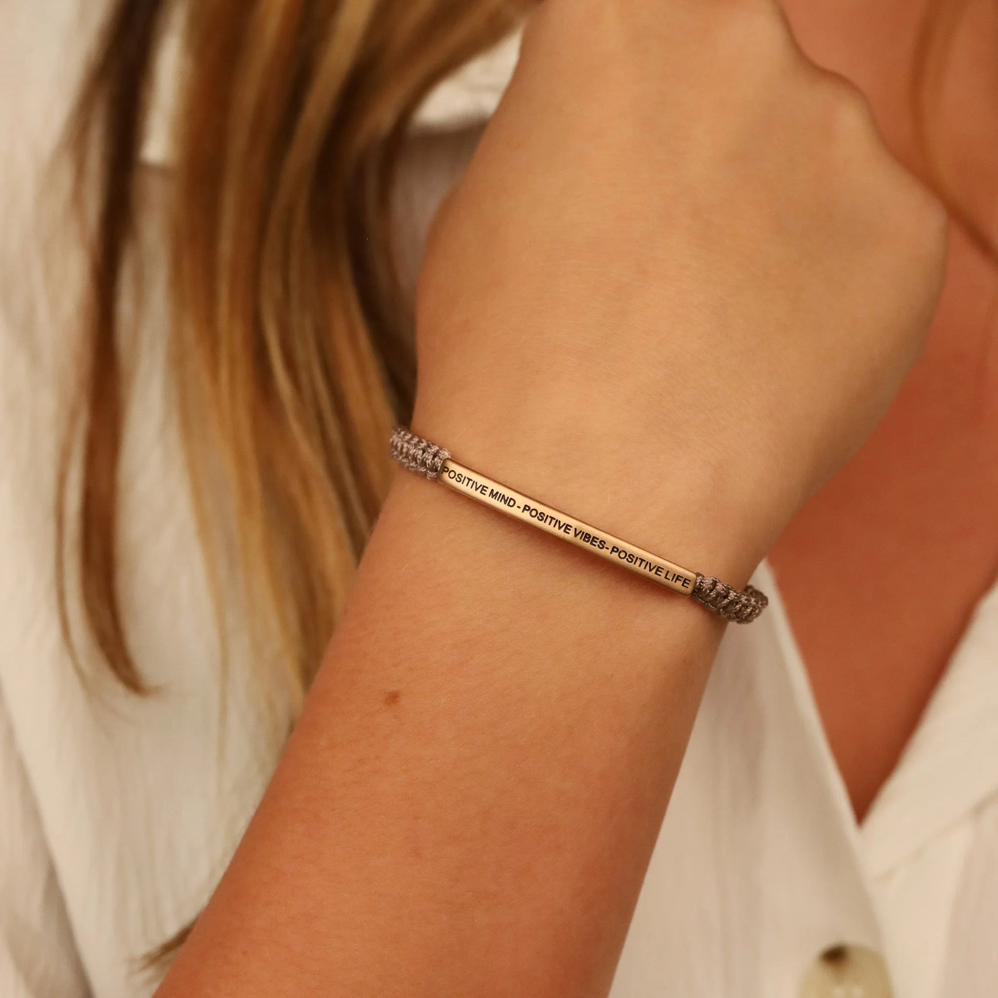 Our inspiration bracelets are beautiful reminders, crafted with 100% all-natural earth stone beads and an engraved stainless steel bar. Wear them throughout the day as a source of inspiration.